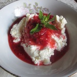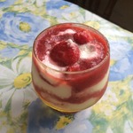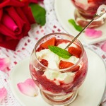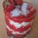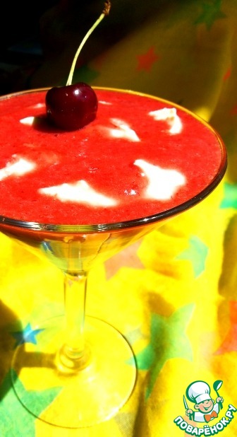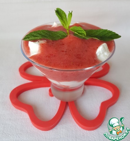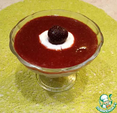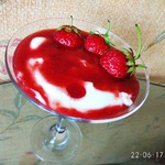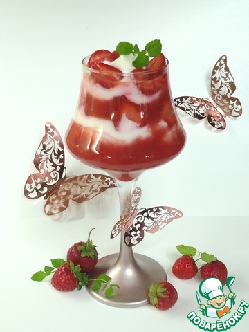 Украсить по своему вкусу и фантазии. Я выложила две клубнички и посыпала через сито сахарной пудрой, подавала охлаждённым.