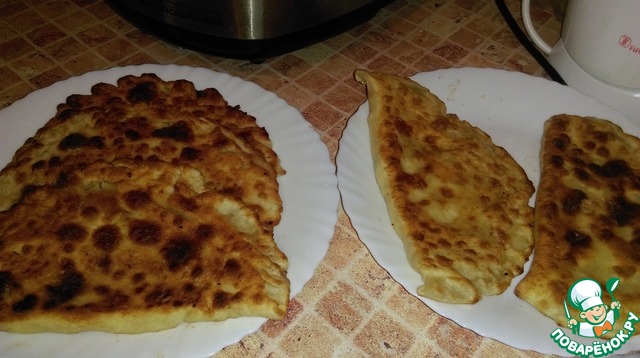 Тесто поделить на части. Каждый кусочек раскатать в лепёшку, подпыляя мукой.