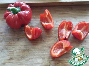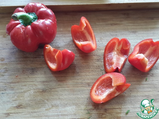 • Сладкий перец нарежтье на сегменты, очистите от семян и перегородок
