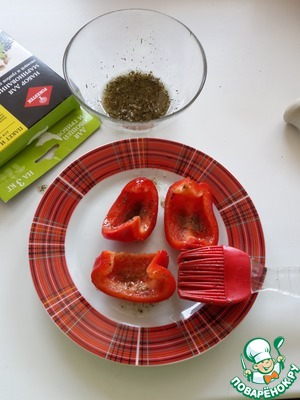 • Смажьте при помощи кисточки каждую "лодочку" перца маринадом