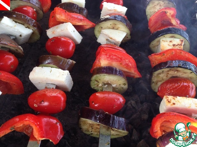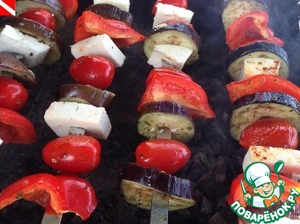 Овощи готовить до готовности, периодически переворачивая шампура, не допуская подгорания.
