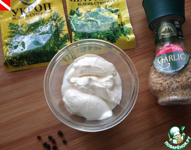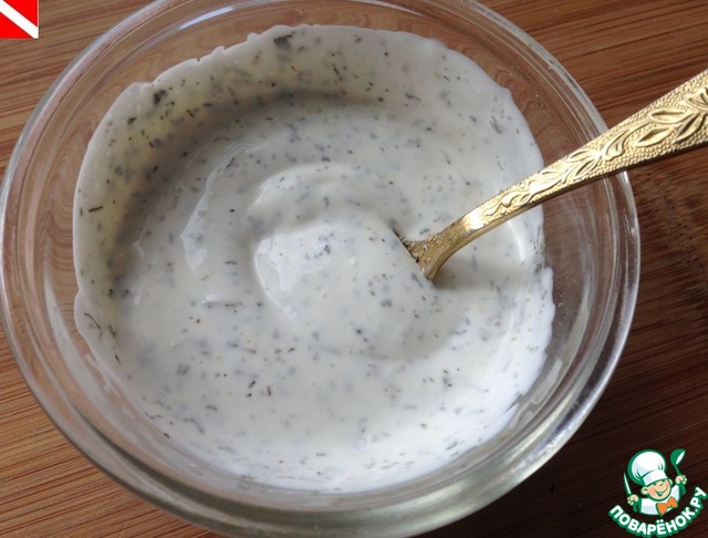 Соус "Ранч": смешать сметану и майонез,
