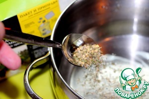 Поставить на огонь воду, количество воды в зависимости от количества грибов. На данное количество 1 литра вполне достаточно, добавить в воду приправу FORESTER для маринования овощей и грибов гриль, воду вскипятить, дать покипеть пару минут, чтобы приправа "разошлась". Если вода не слишком солона для Вас, подсолите.