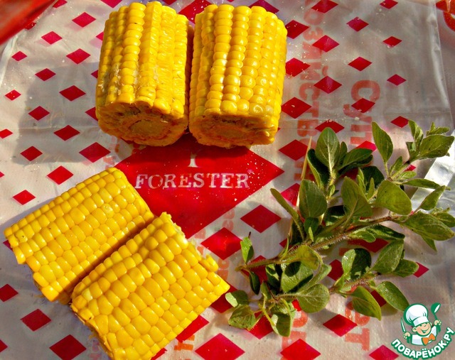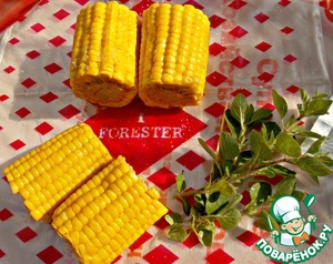 Созревшие початки (не молодые ) очистить и отрезать зеленую часть. Опустить кукурузу в холодную, соленую воду и варить 25-30 мин. Вынуть и дать обсохнуть. Обсыпать приправой от "Forester". Вы можете взять уже готовые початки в магазине. Разрезать пополам.
