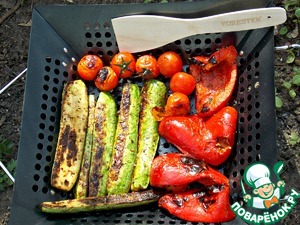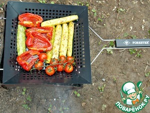 • Сковороду - гриль смазать маслом и разложить на ней овощи.