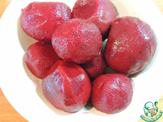• Свёклу заранее отварить или запечь в духовке до готовности, охладить и очистить.
