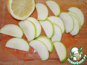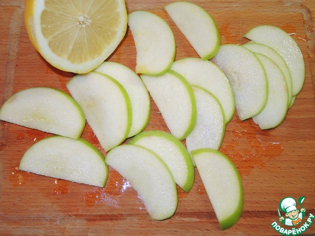 • Яблоко нарезать тонкими ломтиками и слегка сбрызнуть лимонным соком, чтобы не потемнело.