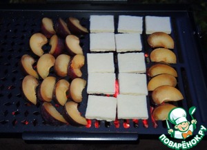 Выложить в один слой сыр и сливы, обжарить с обеих сторон буквально по 3-5 минут. -