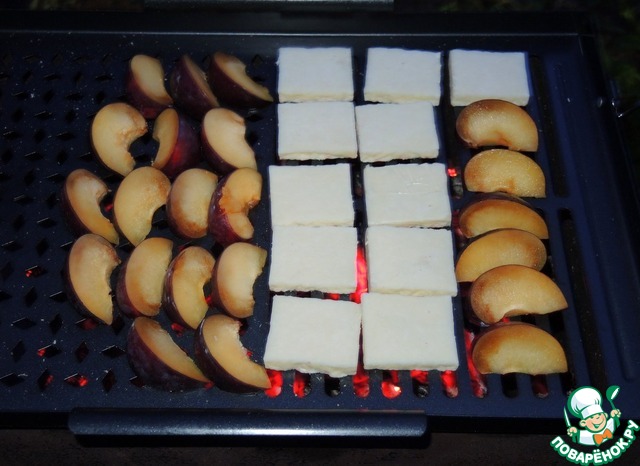 Как вариант гарнира или просто лёгкого ужина - тёплый салат с сочной сливой и сыром для гриля! Очень вкусно!