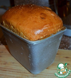 Вот и готов наш хлебушек. Дать постоять пару минут в форме, затем аккуратно извлечь из нее. Остудить на решетке, под полотенцем. Хлеб без начинки отлично подойдет для тостов.