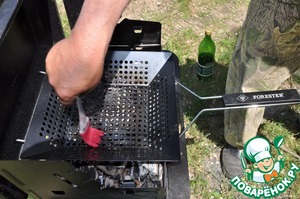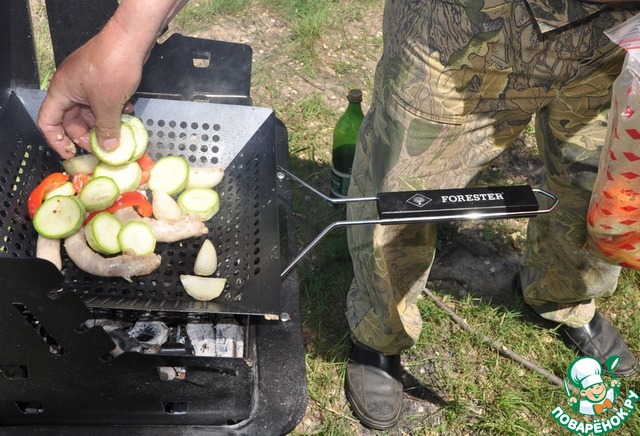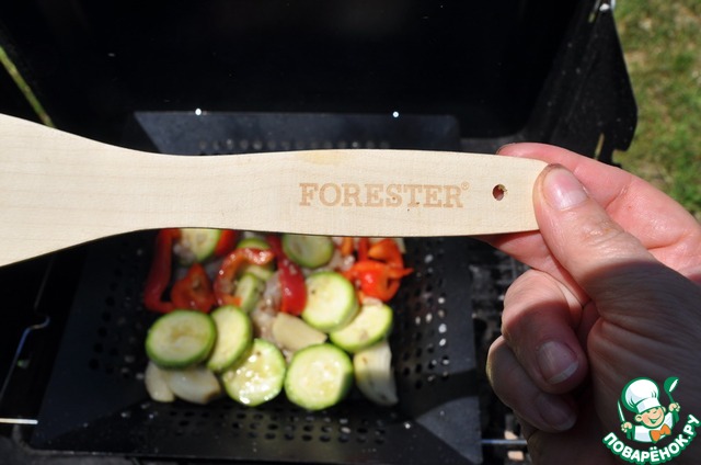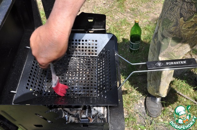 Разводим мангал. Когда угли прогорят, берём сковороду-гриль Forester.