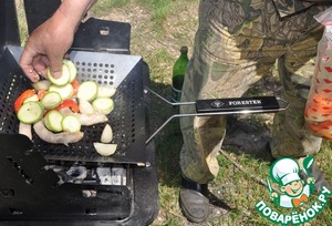 Изумительно аппетитное сочетание овощей-гриль и колбасок. Уверена, что к такому рецепту на пикнике никто не останется равнодушным.