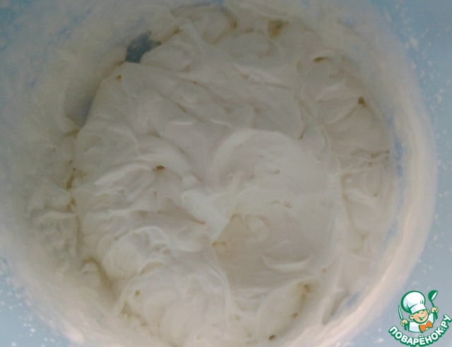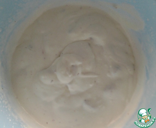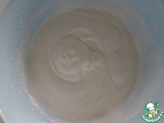 Последний этап - приготовление шоколадного крема. Взбить йогурт с сахаром.