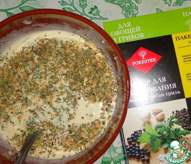 Гриль-приправа для овощей Forester содержит морскую соль, чеснок, петрушку, душицу, можжевеловая ягоду, белый перец, черный перец.