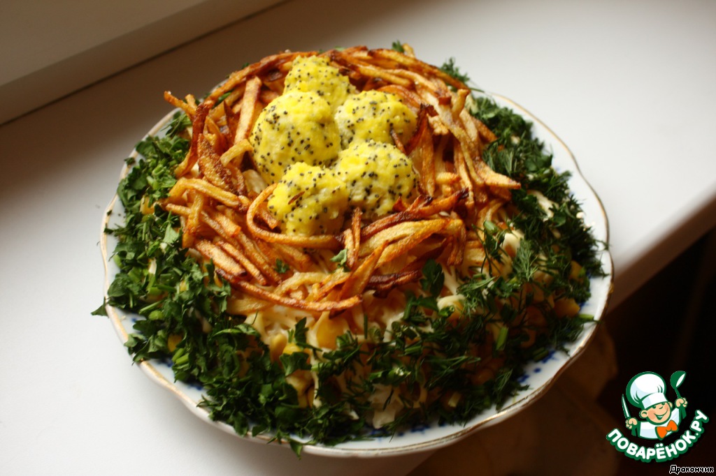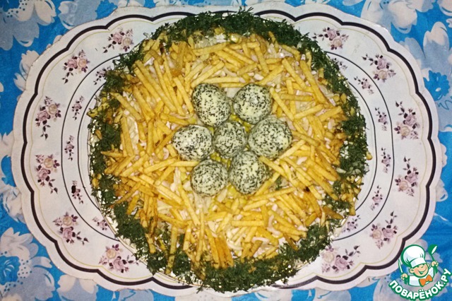 Рецепт «Салат с курицей "Семейное гнездышко"»: