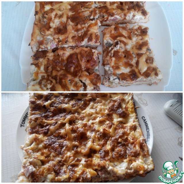 У меня получилась с корочкой из-за того, что сверху я посыпала моцареллу, и она поджарилась так)) -
