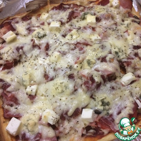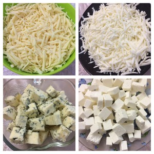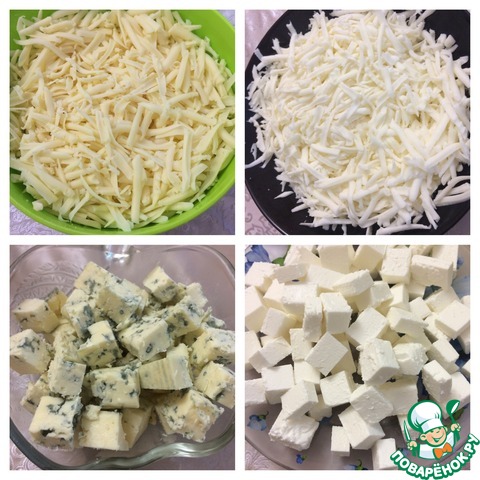 Я брала 4 вида сыра: голландский, моцарелла, фета и дор блю.
