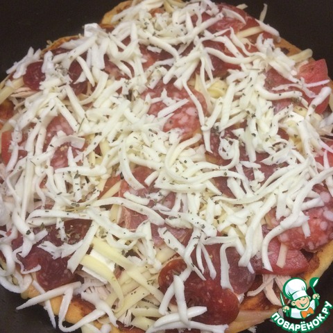 У меня было много начинки и много теста, и я сделала несколько разных пицц (но сфоткала не все).