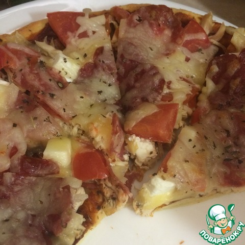 Тесто сфоткать я забыла, поэтому вот вам фото готовой пиццы для разгона аппетита))