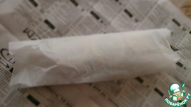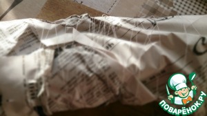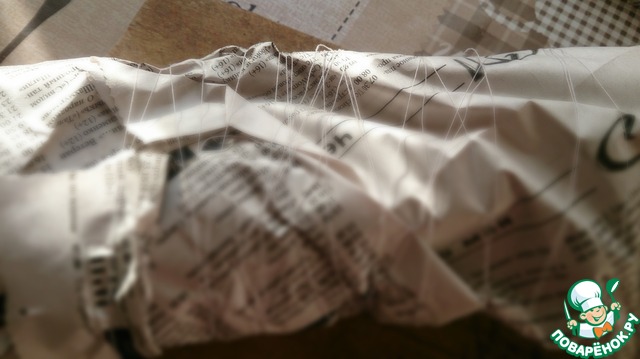 Затем обернуть газетой, перевезать веревкой, или бечевкой. Выложить свертки с рыбой в воду, на 5 минут.