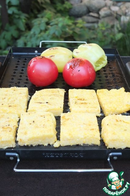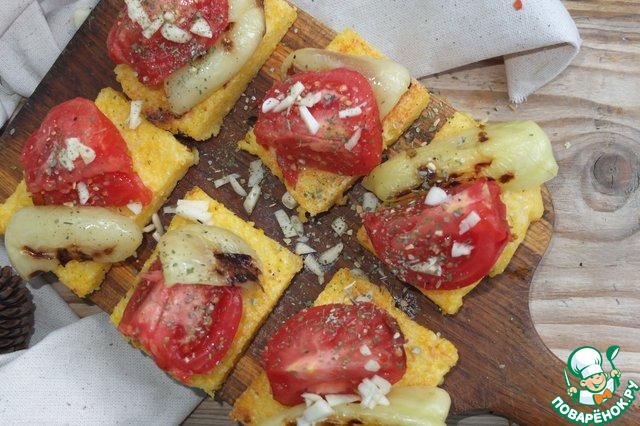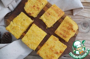 • Подрумяненную поленту выкладываем на сервировочное блюдо.