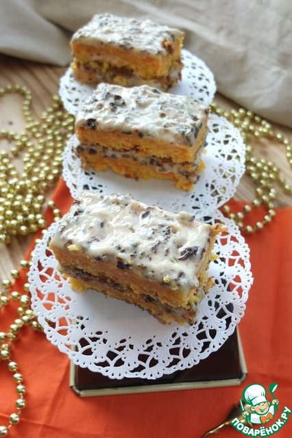 Бисквит нарезаем на квадратики или прямоугольнички и подаем к столу.