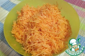 Морковь трём на мелкой тёрке.