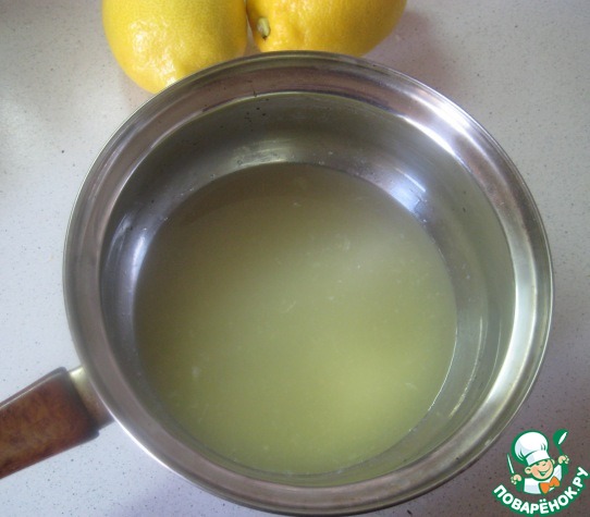 Выдавить сок двух лимонов. Получилось 110 г сока, значит сахара нужно взять столько же. Добавляем сахар к соку, ставим на средний огонь и варим, пока сахар не растворится. -