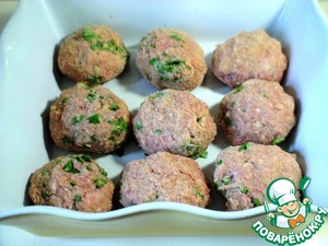 Сформировать тефтельки, обвалять в сухарях, выложить в форму.