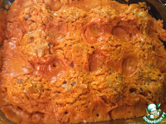 Залить соусом тефтельки и поставить запекаться на 30 минут при температуре 180 градусов