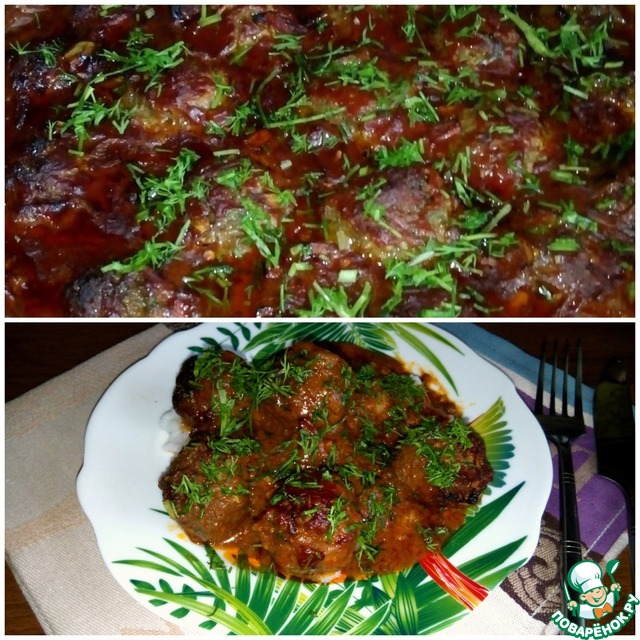 Рецепт «Тефтели, запеченные в баклажанном соусе»: