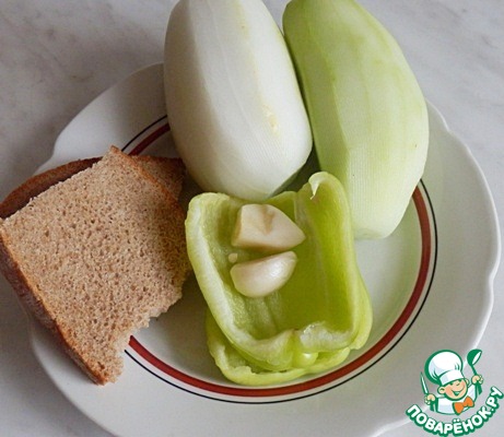 С хлеба срезать корки. Если кусочки хлеба у вас черствые, то предварительно немного размочите их в воде. После отжать.
