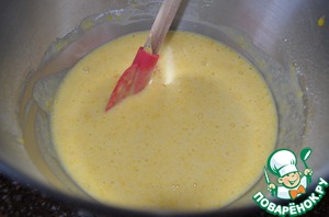 Яйца, сахар, соль взбить до белой пышности.