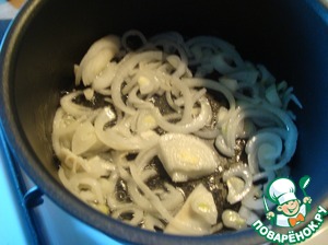 Большую луковицу порезала полукольцами.