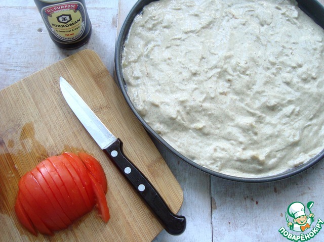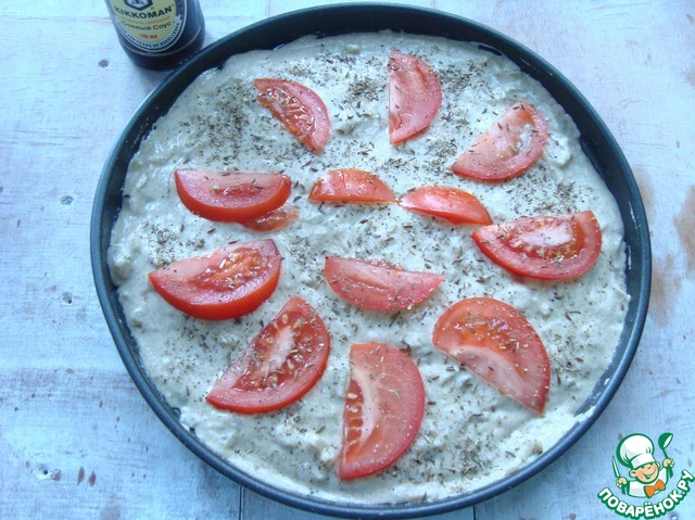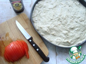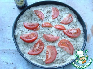 Распределила тесто по форме и порезала дольками помидор.