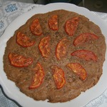 Выложила дольки помидор поверх теста и присыпала тмином и прованскими травами.