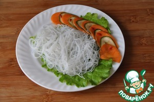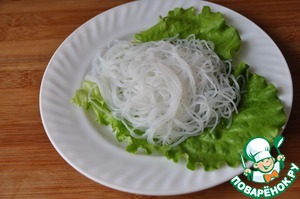 На листья салата кладём фунчозу.