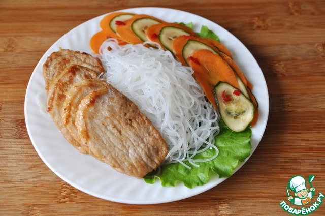 Рецепт «Фунчоза со свининой и маринованными овощами»: