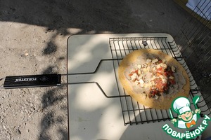 На решетку-барбекю ТМ FORESTER кладем лепешку, сверху выложить 2 ст. л. фасолевой начинки.