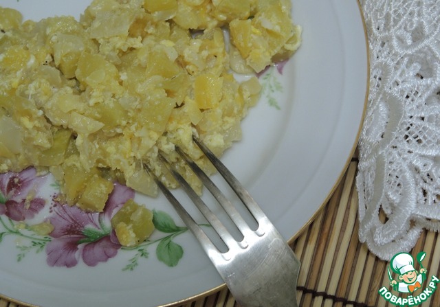 Если это делать на сковороде, то получится тоже самое без 40 минут. На огне. чуть выше среднего, жарим лук ~ 3 минуты, кабачки ~ 4-5 минут (первые пару минут можно накрыть крышкой) , заливаем яйцом.