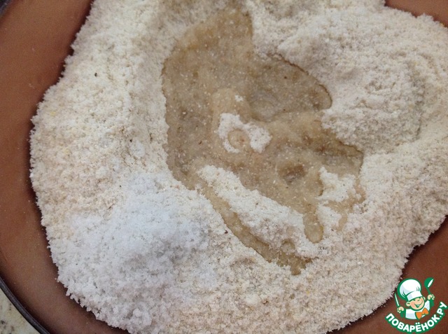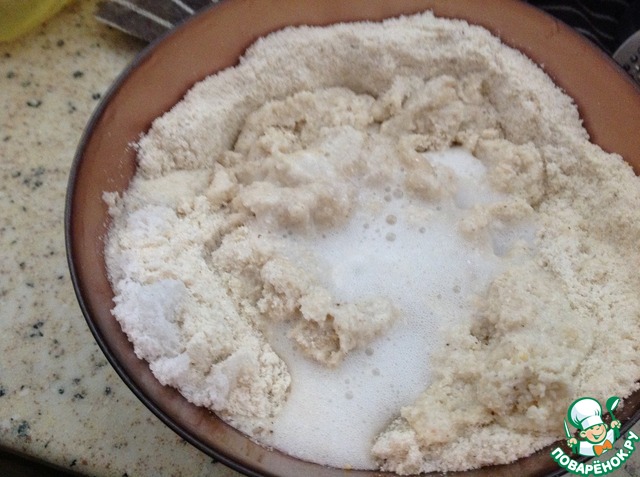 • Постепенно вливать газированную минеральную воду и руками вымешивать "фарш".