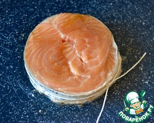 Через указанное время достать рыбные стейки из холодильника и сформировать медальоны.