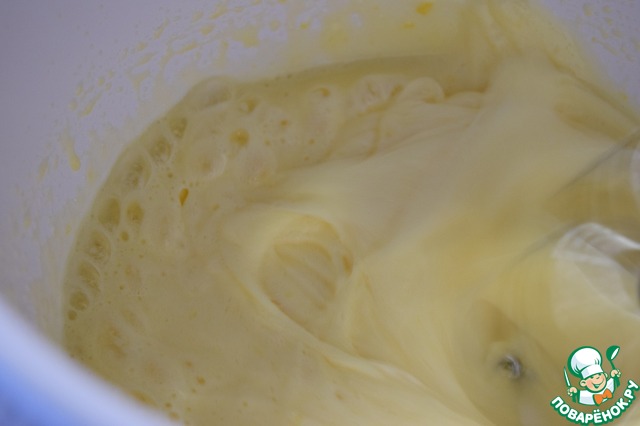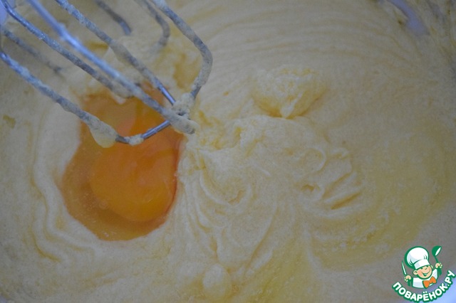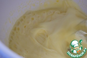 • К масляной массе добавить по одному 3 яйца, взбивая после каждого ввода по пол минуты на яйцо.