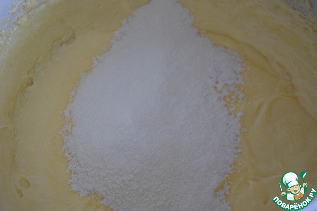 • Добавляем мучную смесь и хорошо перемешиваем.