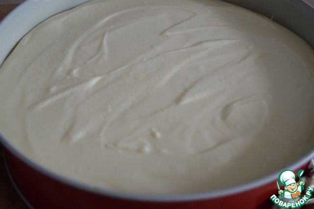 • Сначала выкладываем тесто, а на него выливаем равномерно творожную начинку