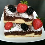 Ларисочка, восхитительный получился пирог! такой вкусный, что рука так и тянется за добавкой. Только я по ошибке перевернула пирог вверх дном. Так была удивлена, что творожная начина (она у меня шоколадная из-за пудинга) опустилась вниз!!!