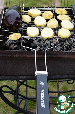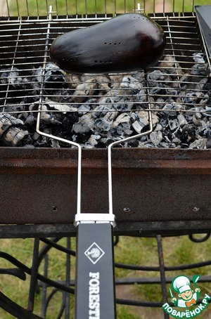 На горячие угли положить решетку-гриль Forester, на нее баклажан и запечь его до готовности, пока он не станет мягким, периодически переворачивая.