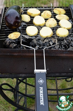 На решетку-гриль Forester выкладываем ломтики картофеля и запекаем до готовности, часто переворачивая. В конце посолим.