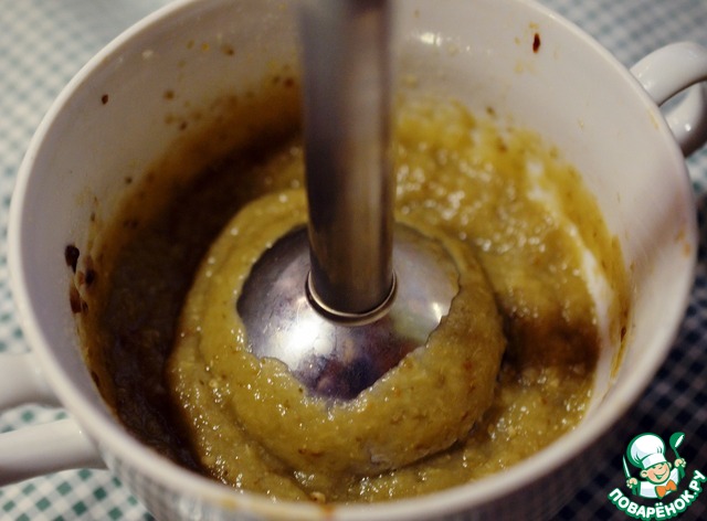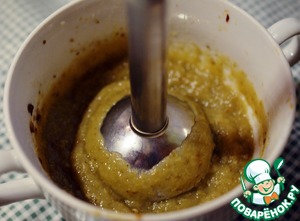 Добавляем чеснок, соль и пюрируем с помощью блендера.