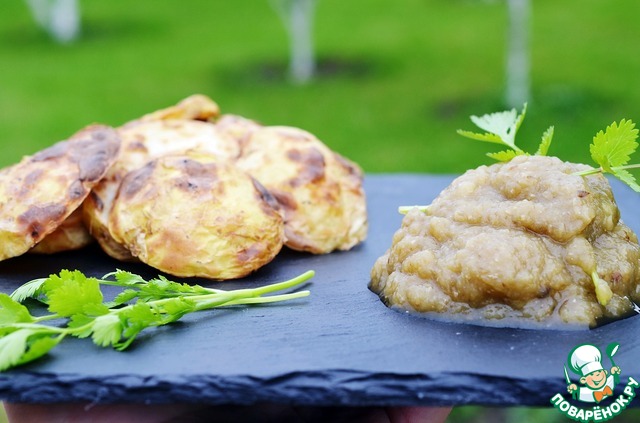 Рецепт «Ломтики картофеля с пюре из запеченного баклажана»: